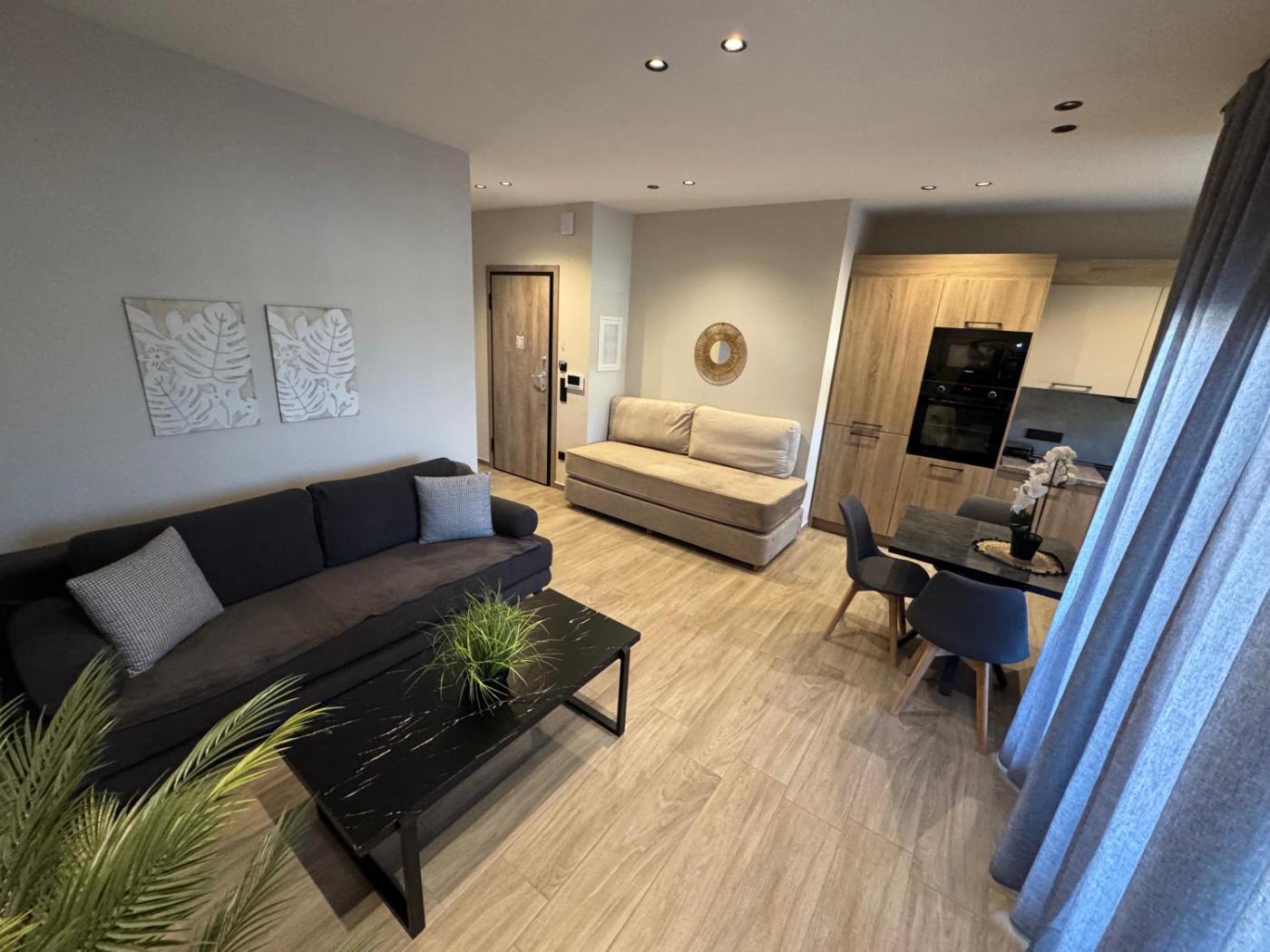 One-Bedroom Apartment. This apartment features 1 living room, 1 separate bedroom and 1 bathroom with a walk-in shower and free toiletries. In the fully equipped kitchen, guests will find a stovetop, a refrigerator, kitchenware and an oven. The air-conditioned apartment features a flat-screen TV with streaming services, a washing machine, soundproof walls, a tea and coffee maker as well as garden views. The unit has 3 beds.