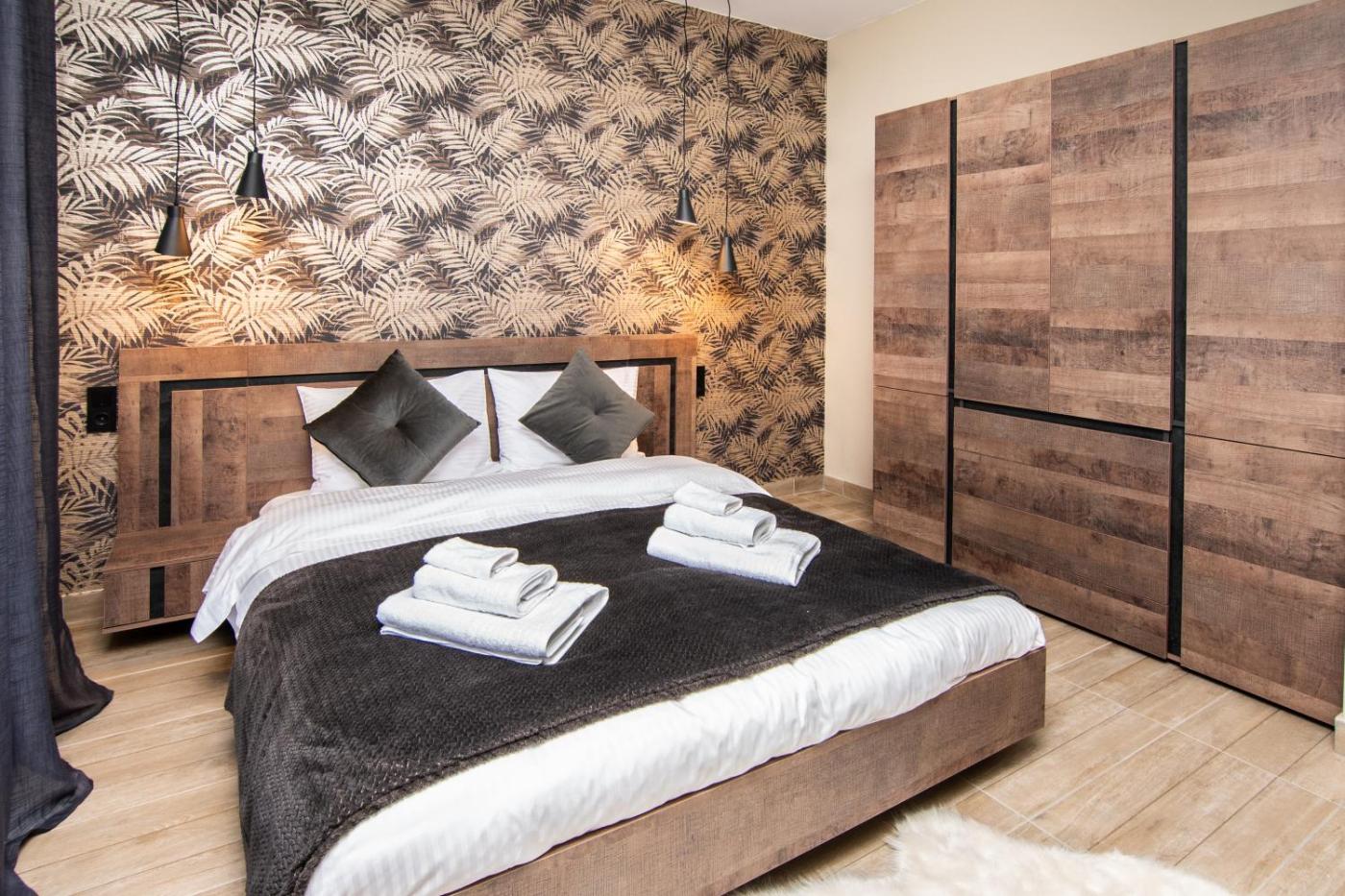Two-Bedroom Apartment. The spa bath is the standout feature of this apartment. This spacious apartment features 1 living room, 2 separate bedrooms and 1 bathroom with a walk-in shower and free toiletries. In the well-equipped kitchen, guests will find a stovetop, a refrigerator, kitchenware and an oven. The air-conditioned apartment features a flat-screen TV with streaming services, a washing machine, a tea and coffee maker, a seating area as well as a quiet street view. The unit has 4 beds.