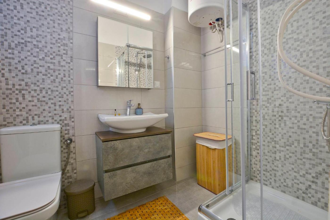 One-Bedroom Apartment. This spacious apartment includes 1 living room, 1 separate bedroom and 1 bathroom with a walk-in shower and a hairdryer. In the kitchen, guests will find a stovetop, a refrigerator, an oven and a tea and coffee maker. Boasting a balcony with city views, this apartment also offers air conditioning and a flat-screen TV. The unit has 2 beds.