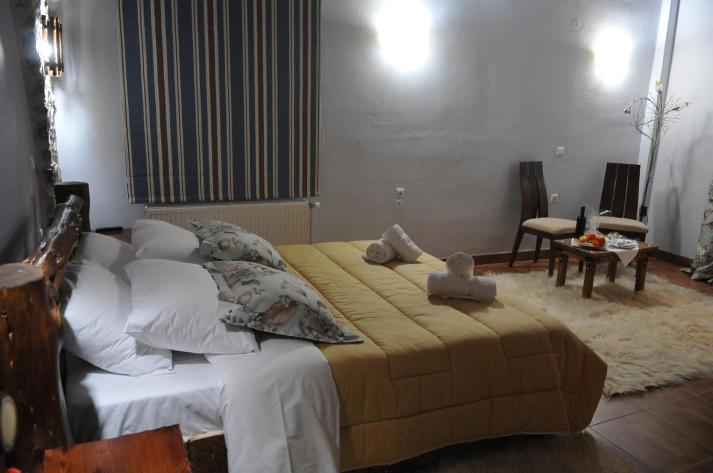 Deluxe Double or Twin Room. Traditionally decorated room with wooden ceilings and stone walls, featuring handmade furnishings. Offers cable TV, free WiFi and balcony overlooking the mountains and the garden. ;
