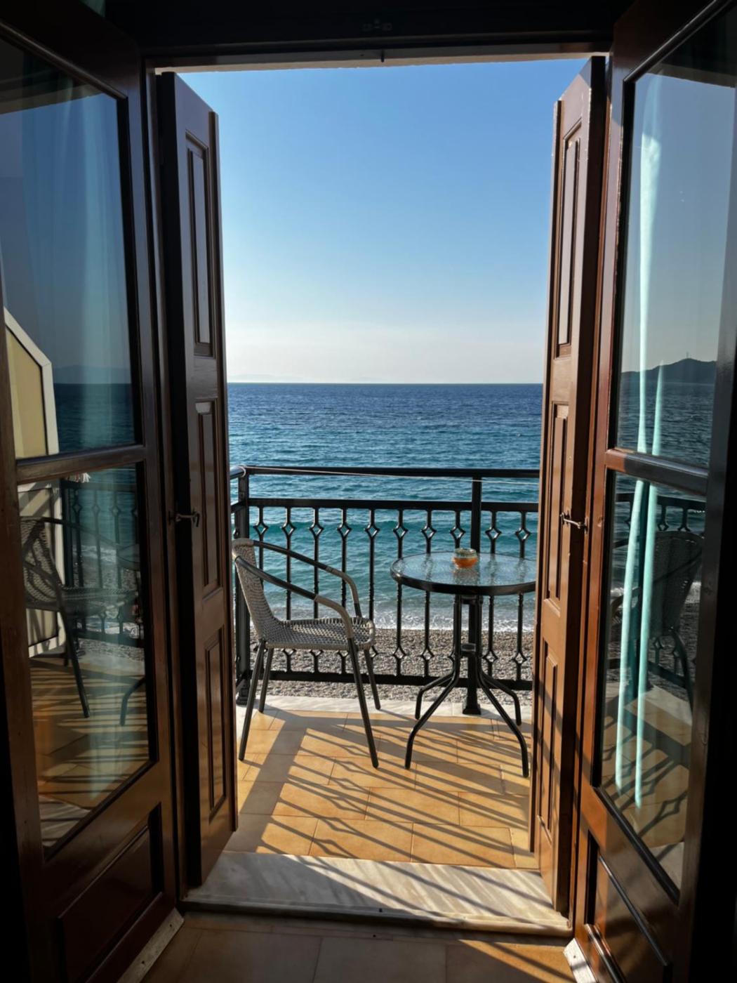 Superior Twin Room with Sea View. Right on the beach, this room offers a furnished balcony overlooking the Aegean Sea. Fitted with a fan, it is located on the upper floor and has a fridge. Free WiFi is provided. ;