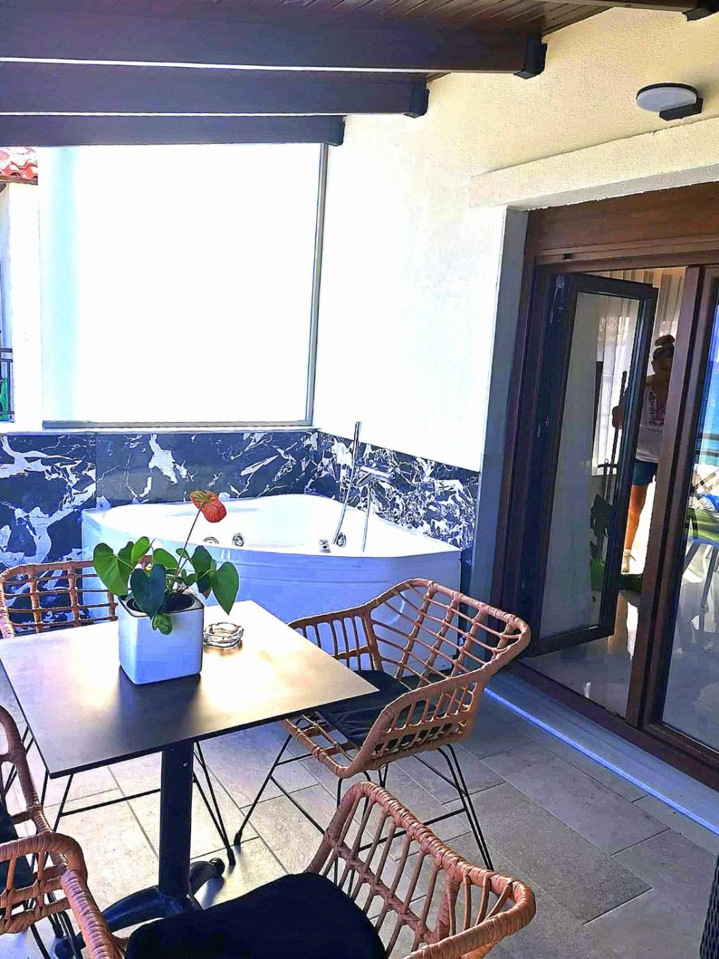 Apartment with Sea View. The spa bath is the standout feature of this apartment. This air-conditioned apartment comes with 1 living room, 1 separate bedroom and 1 bathroom with a bath or a shower. The apartments kitchen, which features a stovetop and an oven, is available for cooking and storing food. This apartment has a dressing room, a tiled floor, a flat-screen TV with cable channels and a balcony. The unit has 2 beds.