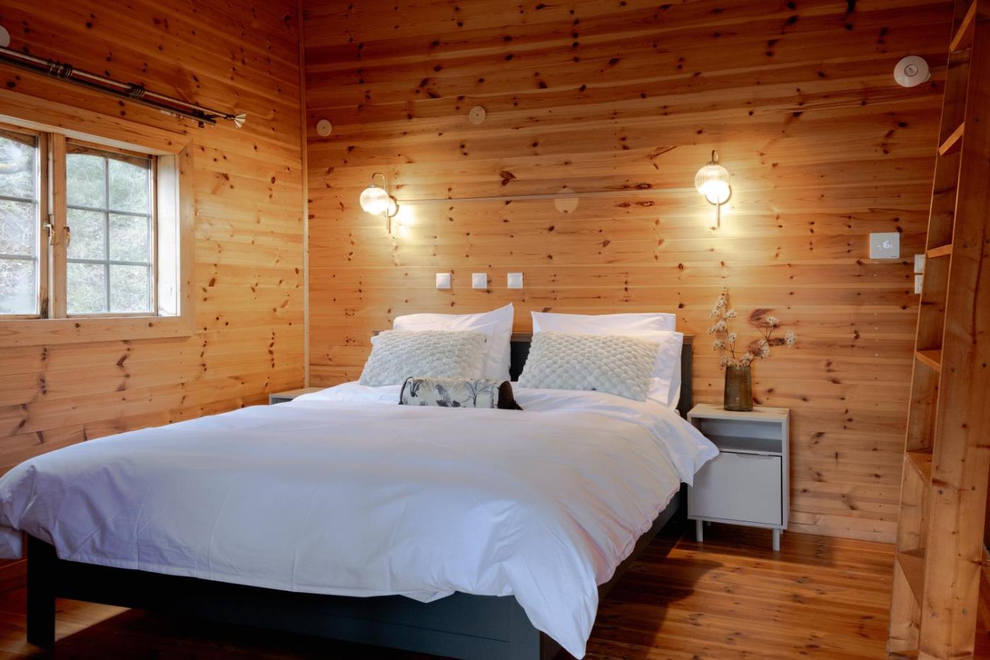 One-Bedroom Chalet. The chalet has 1 bedroom and 1 bathroom with a shower and free toiletries. Boasting a terrace, this chalet also features a tea and coffee maker, a wardrobe and a flat-screen TV. The unit has 3 beds.